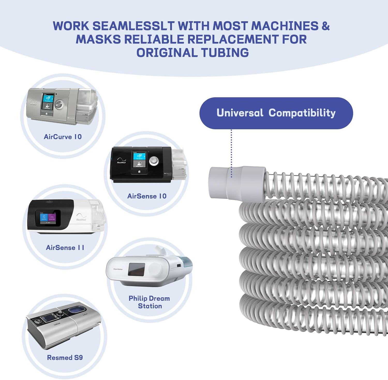 - Universal compatibility: Designed to work with popular CPAP machines like ResMed S9, AirSense 10 and 11, AirCurve 10, and most other CPAP machines and masks, providing a reliable replacement for your original hose without the need for extensions or connectors