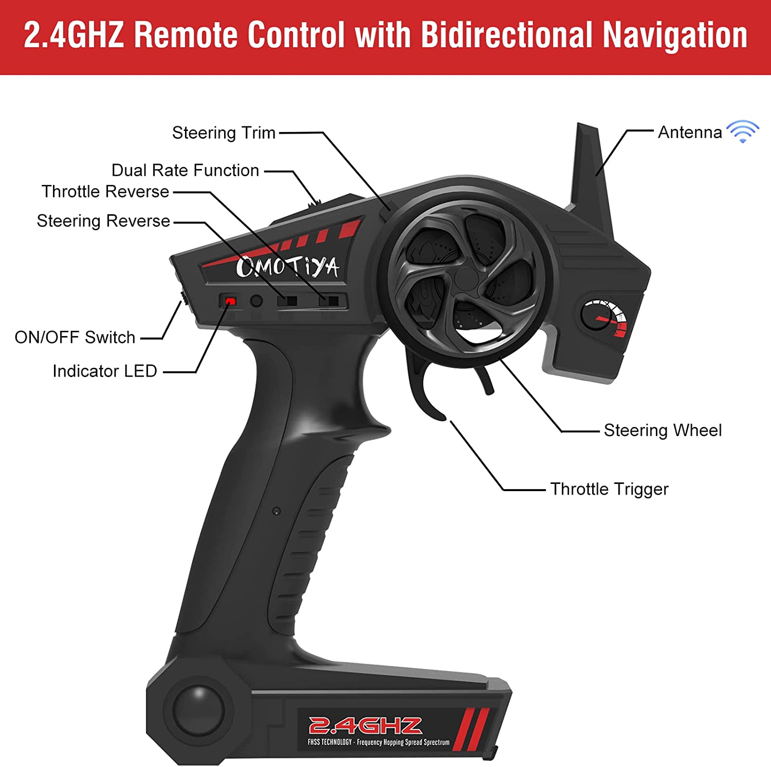 - Low Battery Alarm Function: When the controller's battery is at low voltage, the controller's LED light will be flashing red to remind you to change the batteries. At the same time, if you feel that the speed of the boat is significantly reduced, please charge the boat immediately.